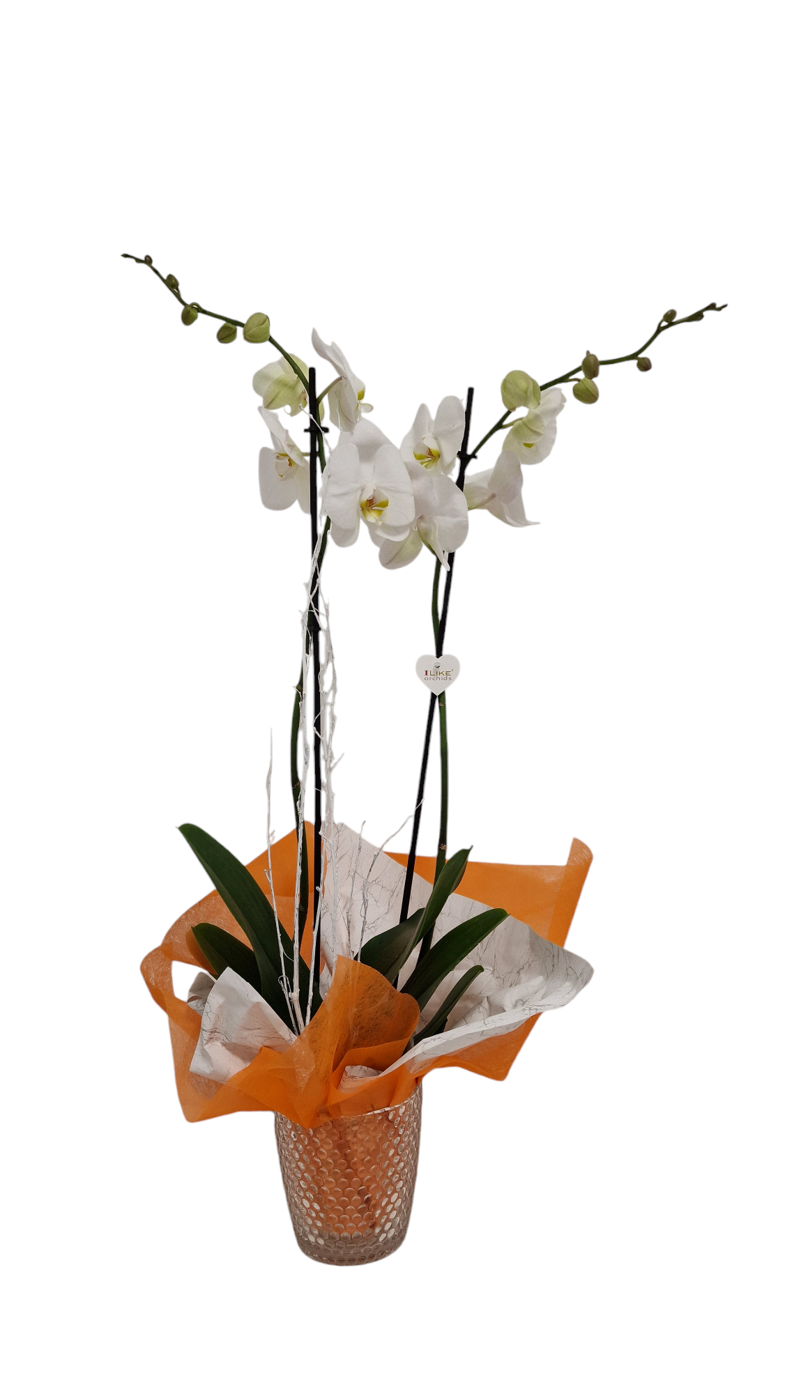 Sé el primero en valorar “Orquidea blanca con mecetero de cristal”